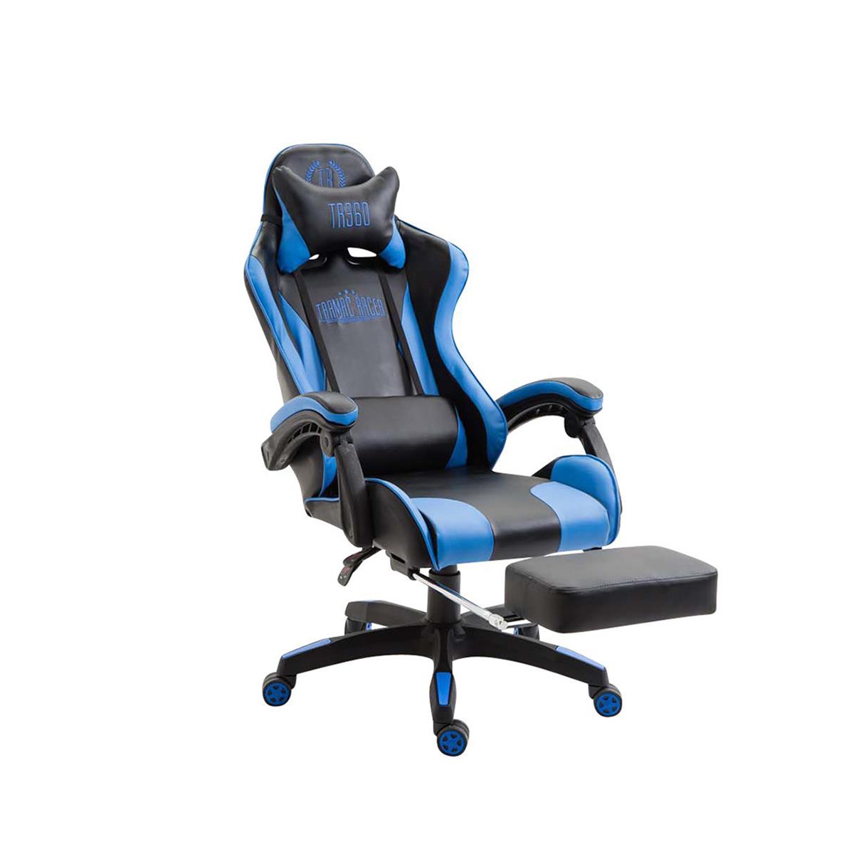 Sedia Gaming LAUDA, Cuscino Lombare e Cervicale, in Pelle Nero/Blu