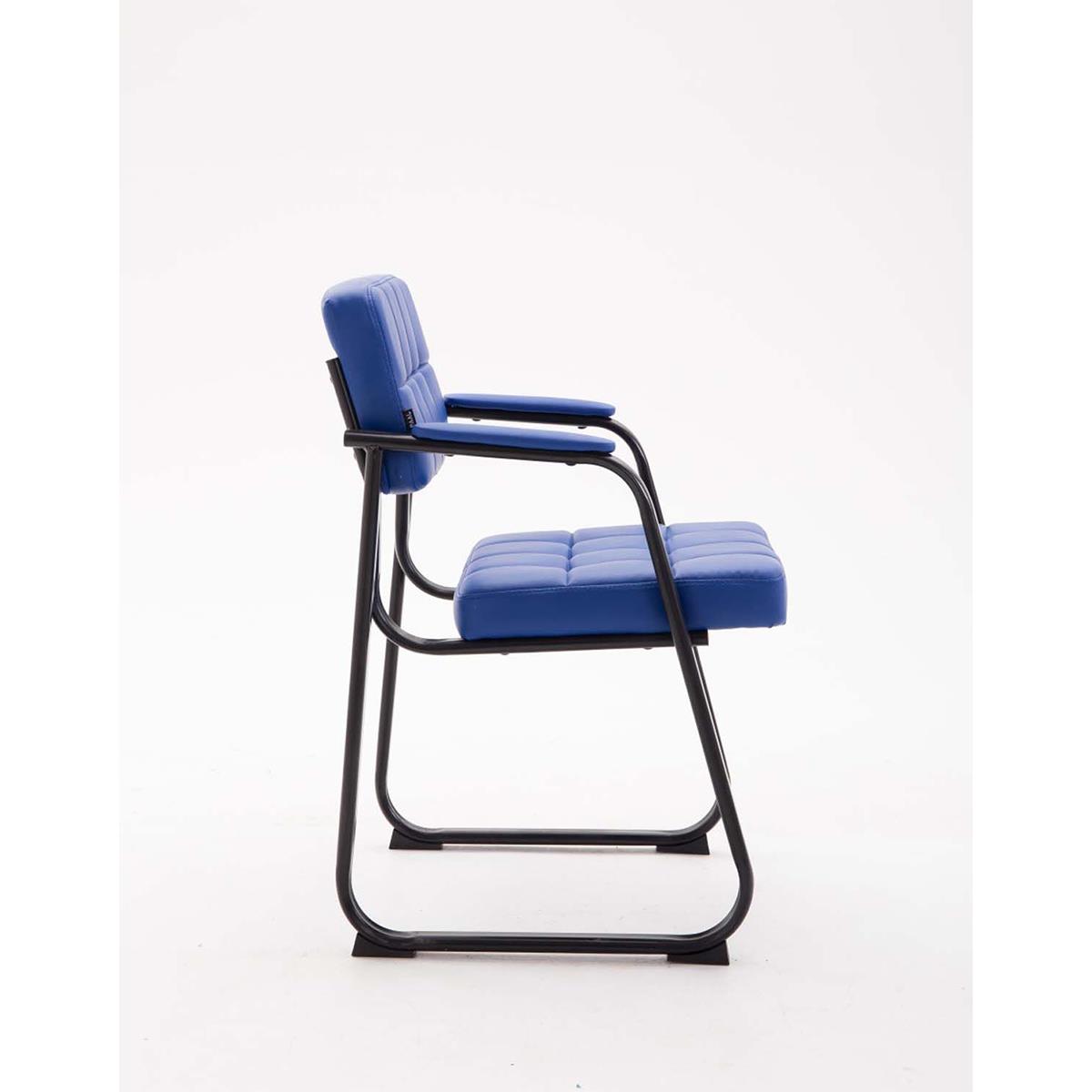 Sedia ospiti OSLO, Telaio in Metallo Nero, Imbottita in Pelle Blu