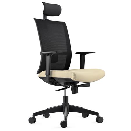 È una sedia molto comoda grazie al sedile imbottito rivestito in tessuto. Lo schienale è realizzato in tessuto a rete, offrendo un appoggio di comfort alla schiena per varie ore d'uso.