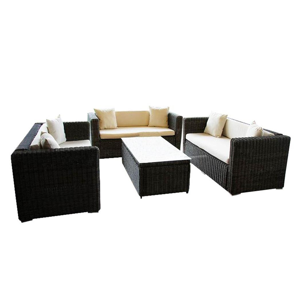 Il tuo ufficio o locale commerciale include una zona all'esterno per i clienti? Nessun problema con il set da tre divani a 2 posti NIZZA: un modello realizzato in polyrattan con imbottitura impermeabile, robusto e durevole.