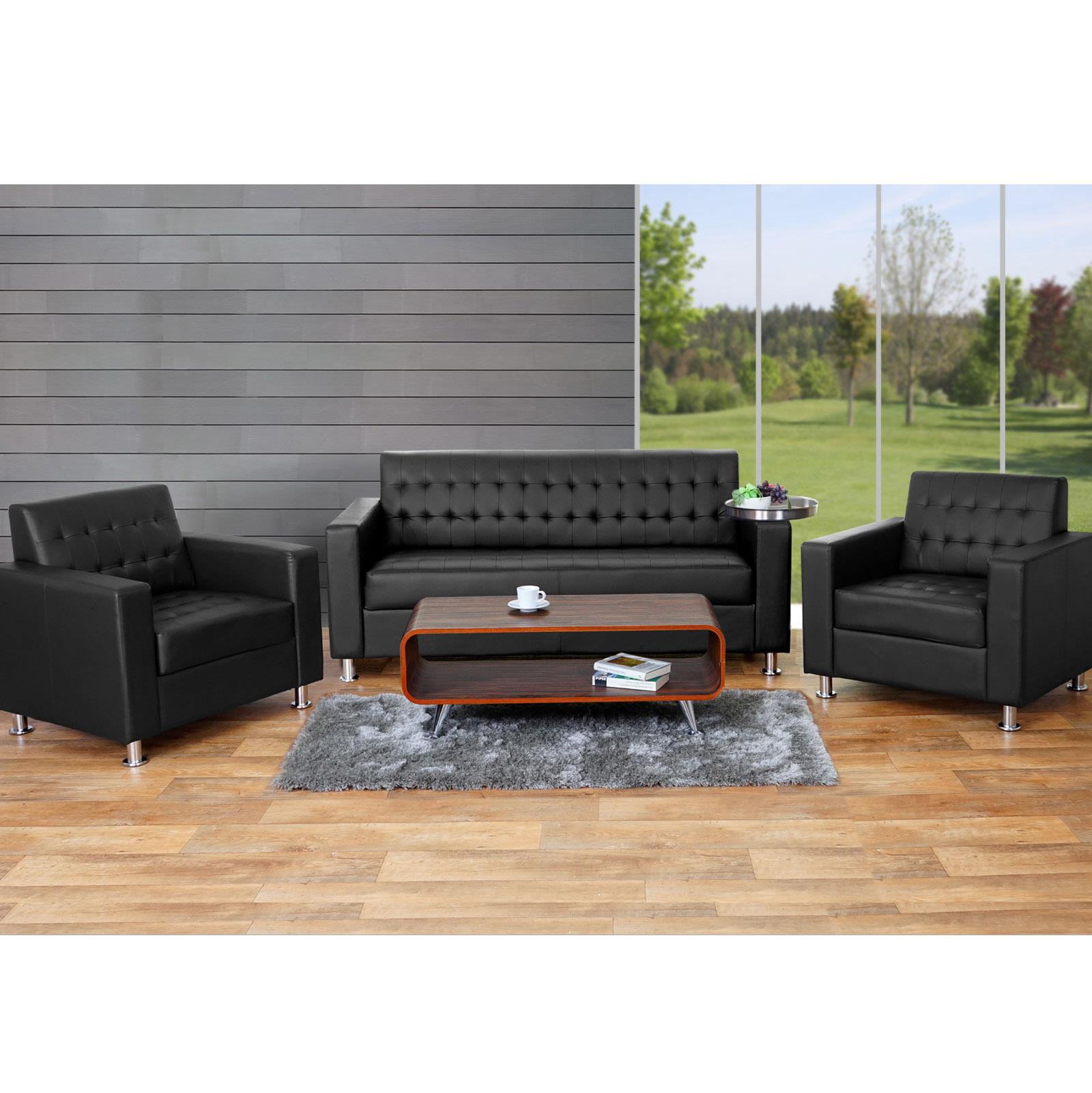Il set comprende due divani a un posto e un divano a tre posti, imbottiti in schiuma di poliuretano per risultare comodi e durare nel tempo. E i loro ampi braccioli offrono un ottimo sostegno. La finitura trapuntata del sedile e dello schienale è semplice ma elegante, perfetta per il tuo spazio di lavoro.