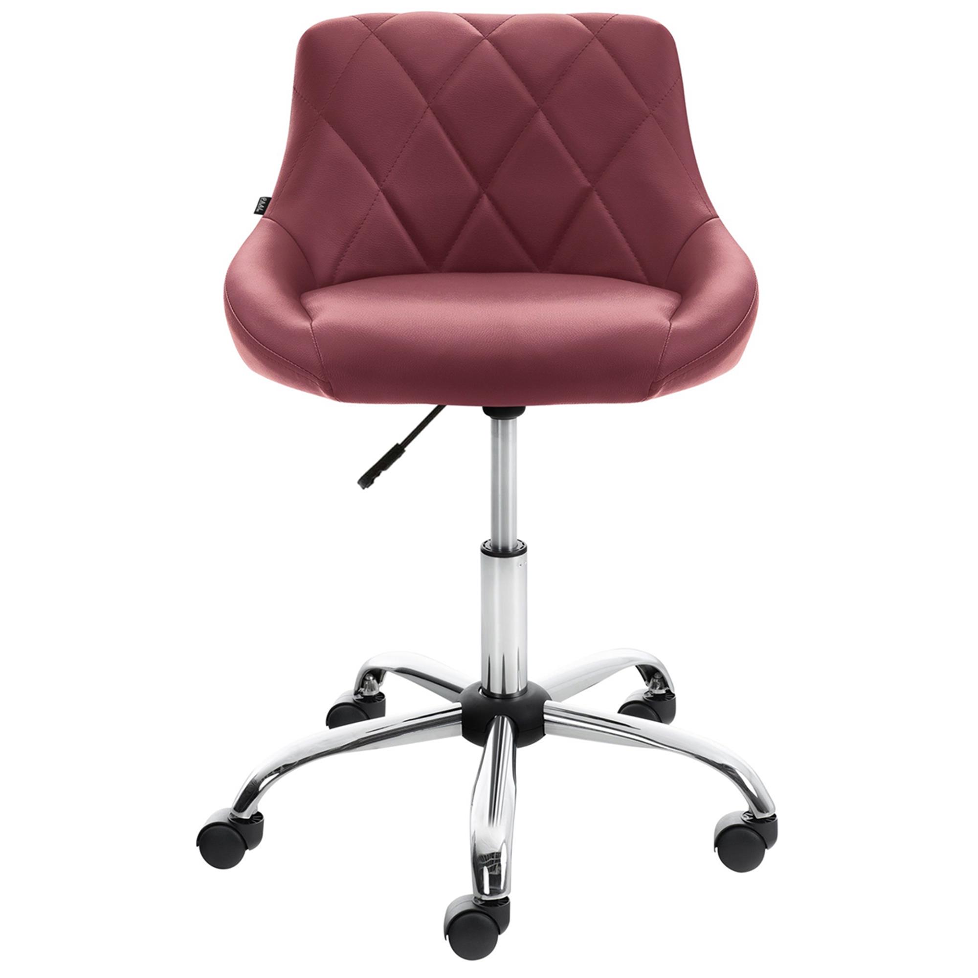 Sgabello da Ufficio DOVEN, Seduta Imbottita, Rivestimento in Pelle con Cuciture, Bordeaux