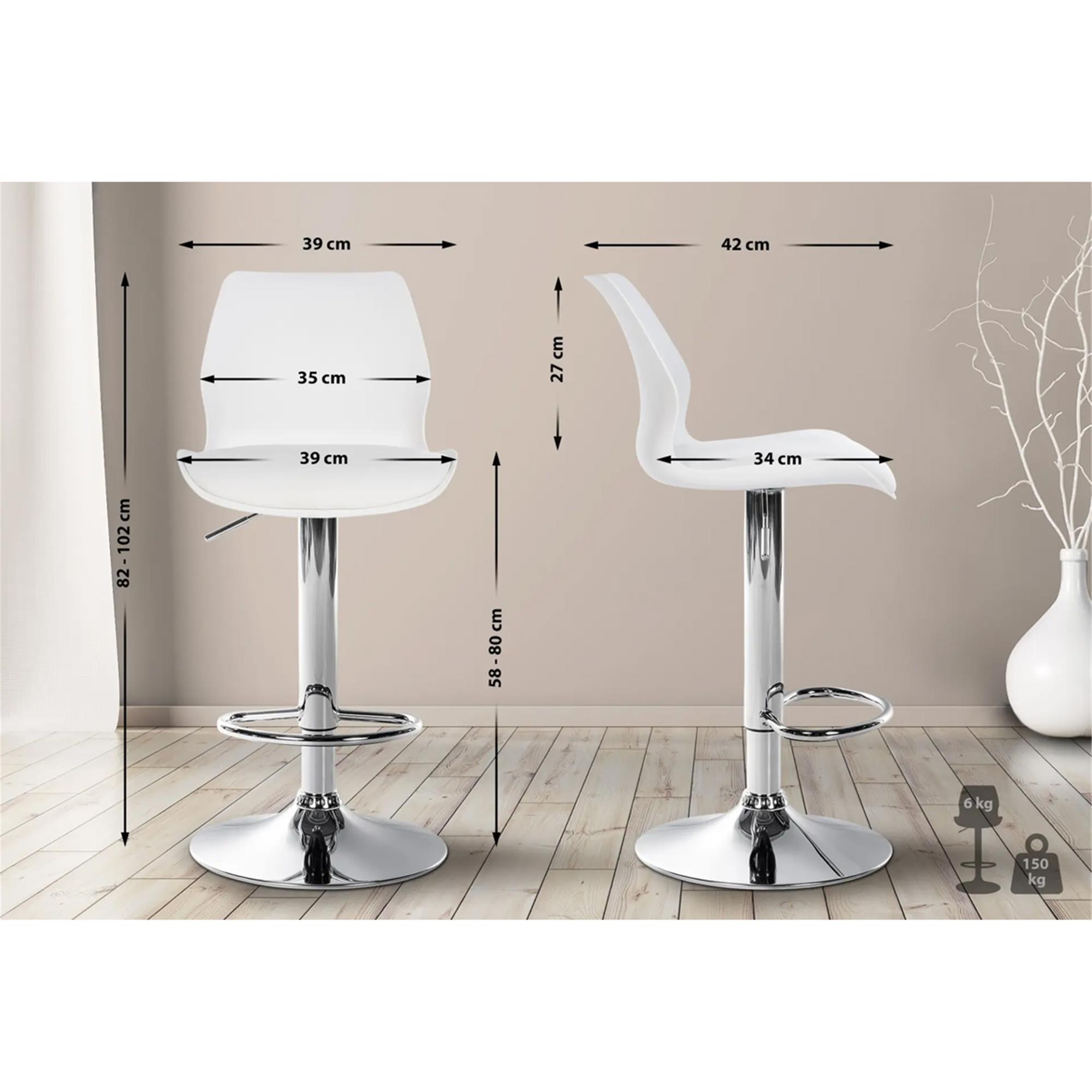 Sgabello DALIAN, Sedile Imbottito con Rivestimento in Pelle, colore Bianco