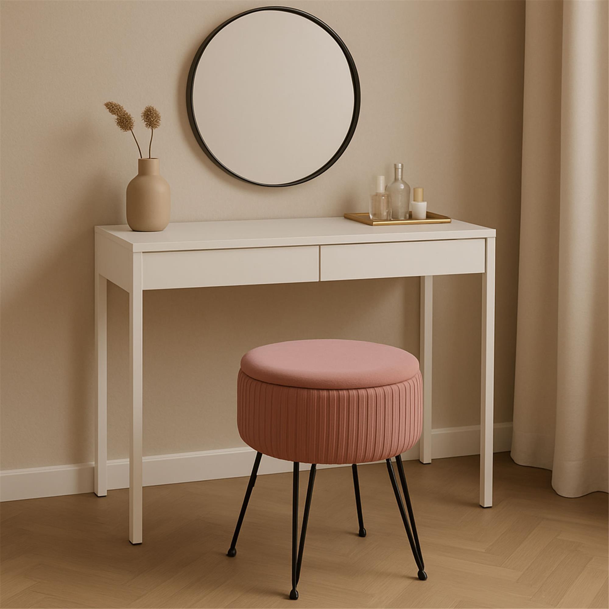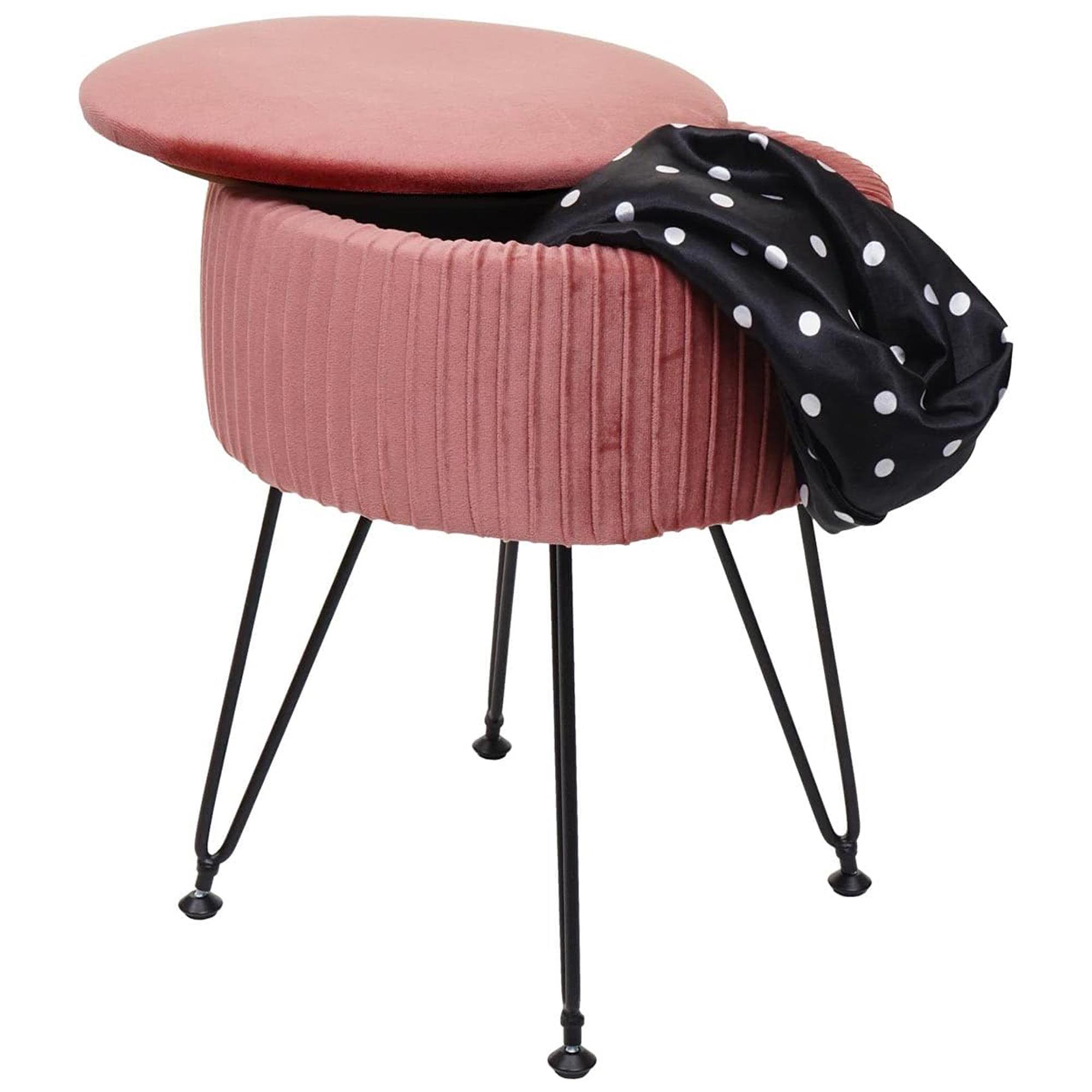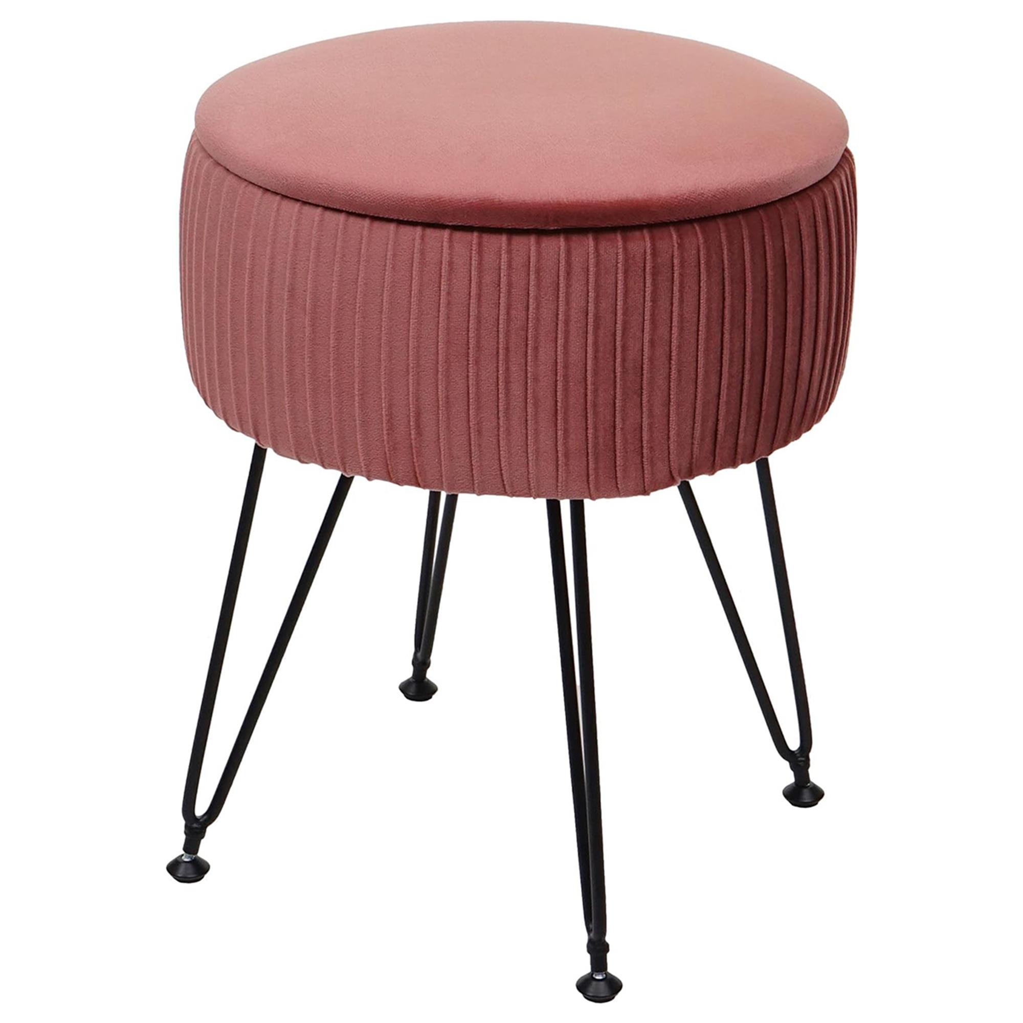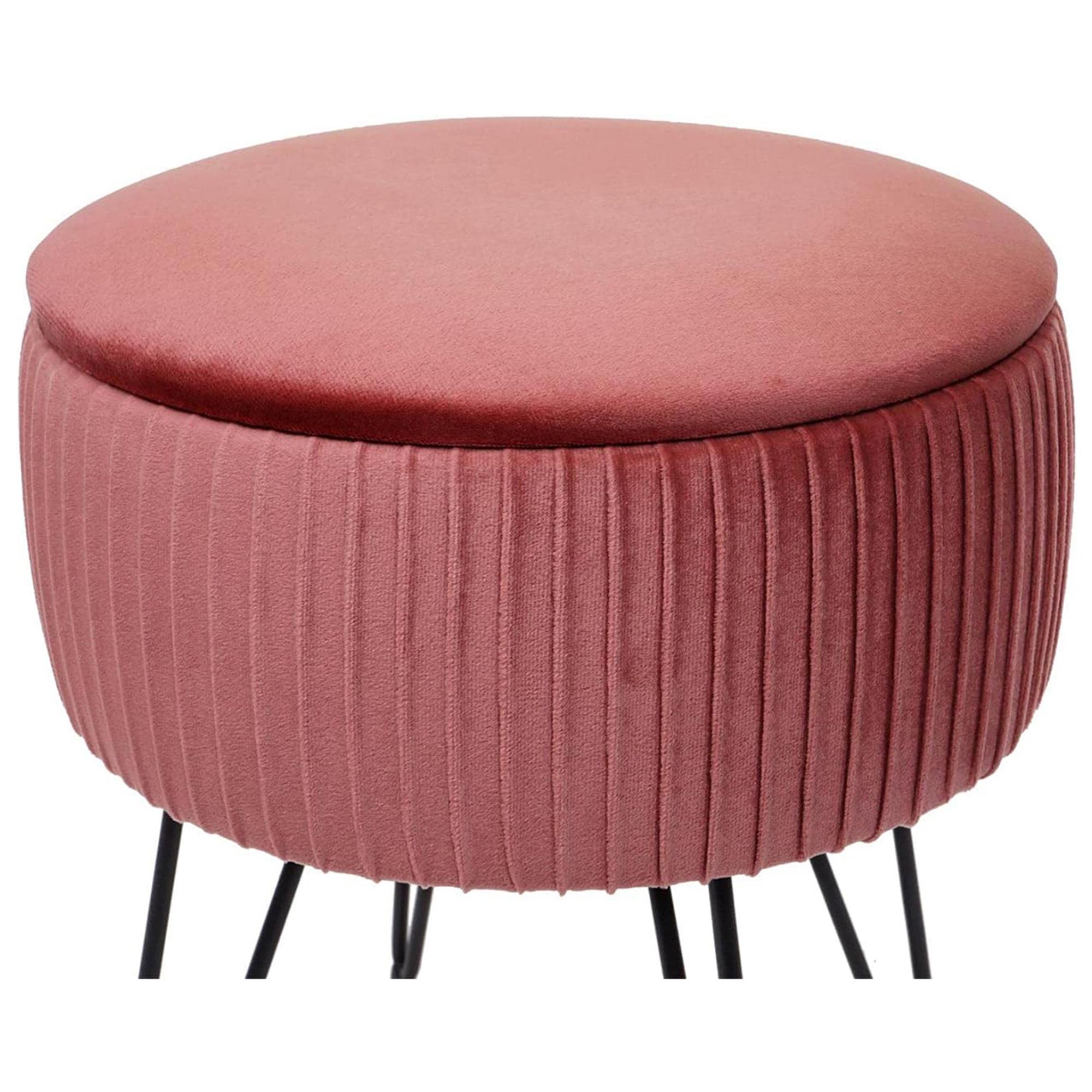 Sgabello MIKO, con Vano Portaoggetti, Versatile e Pratico, Struttura Nera, Tessuto Rosa