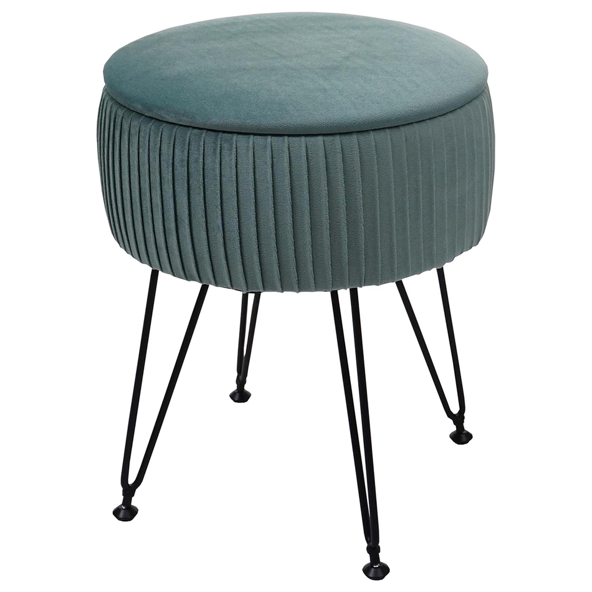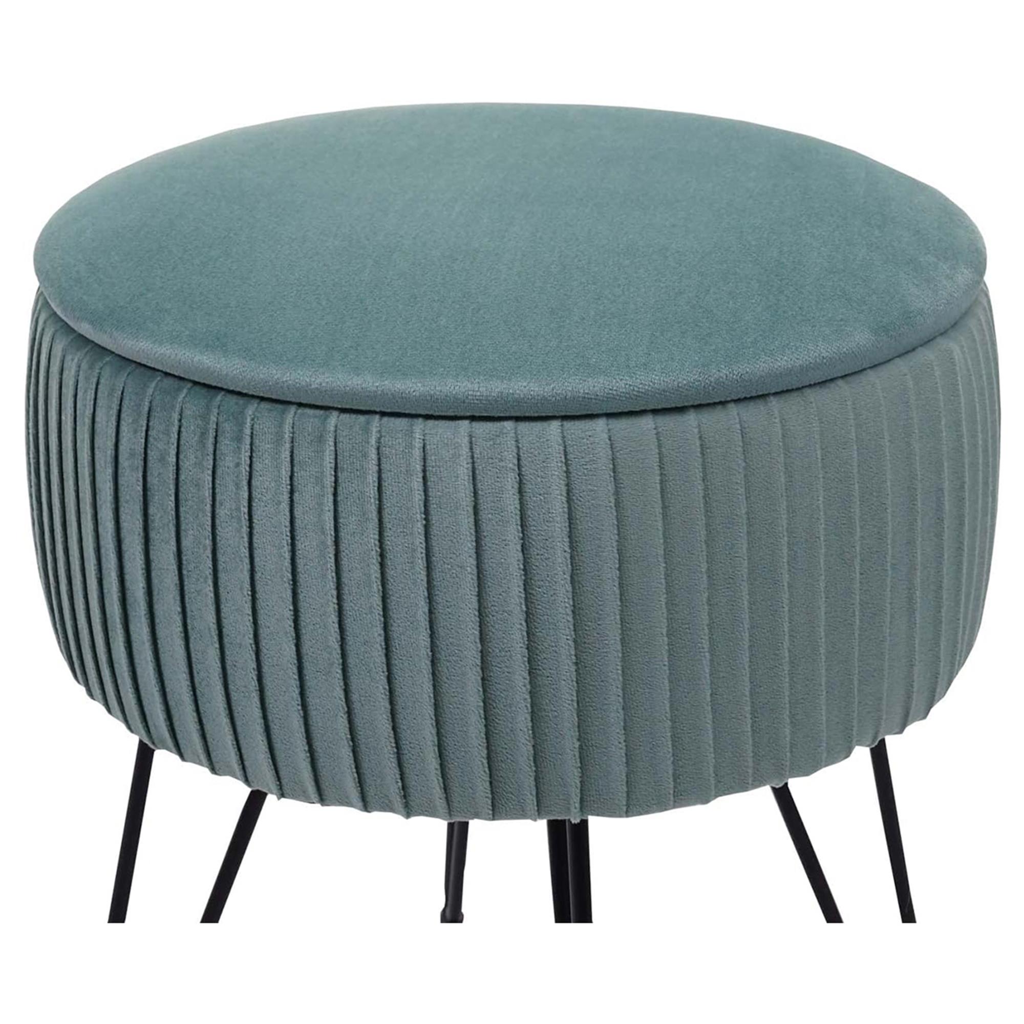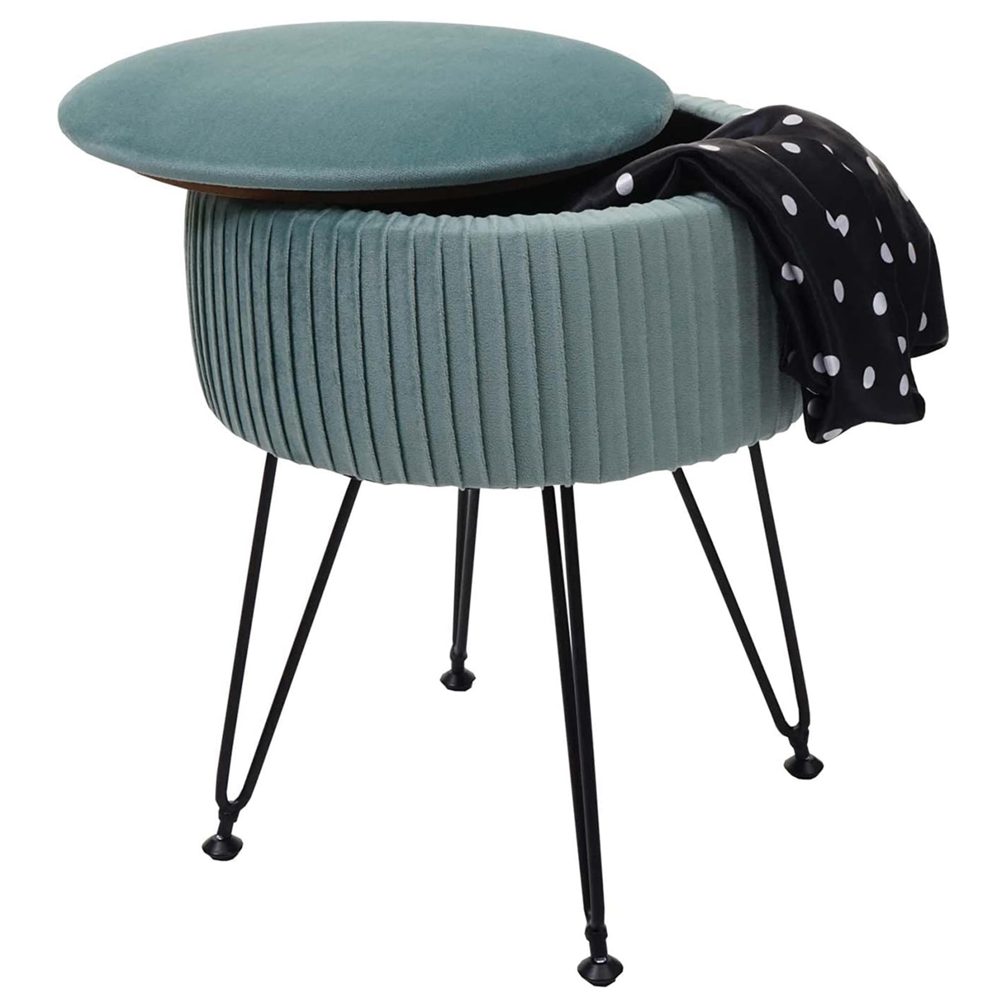 Sgabello MIKO, con Vano Portaoggetti, Versatile e Pratico, Struttura Nera, Tessuto Verde