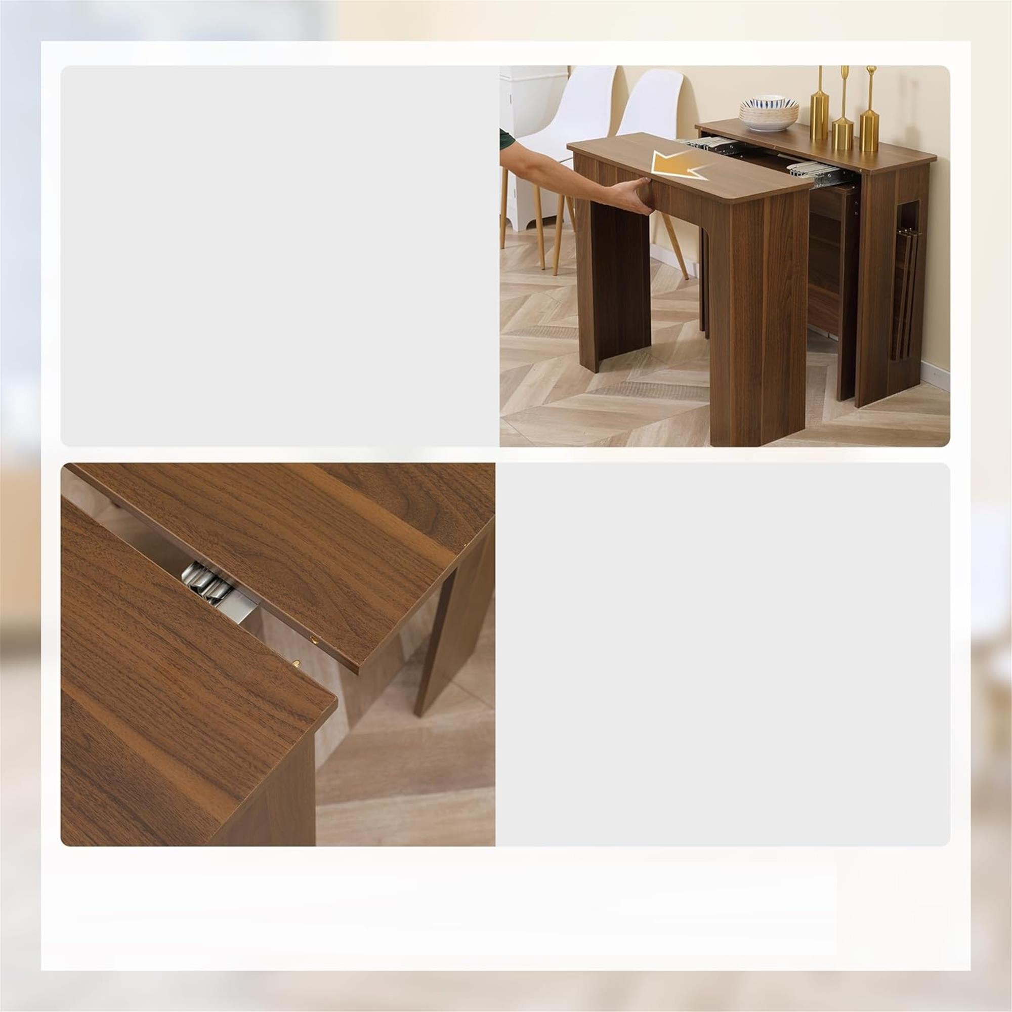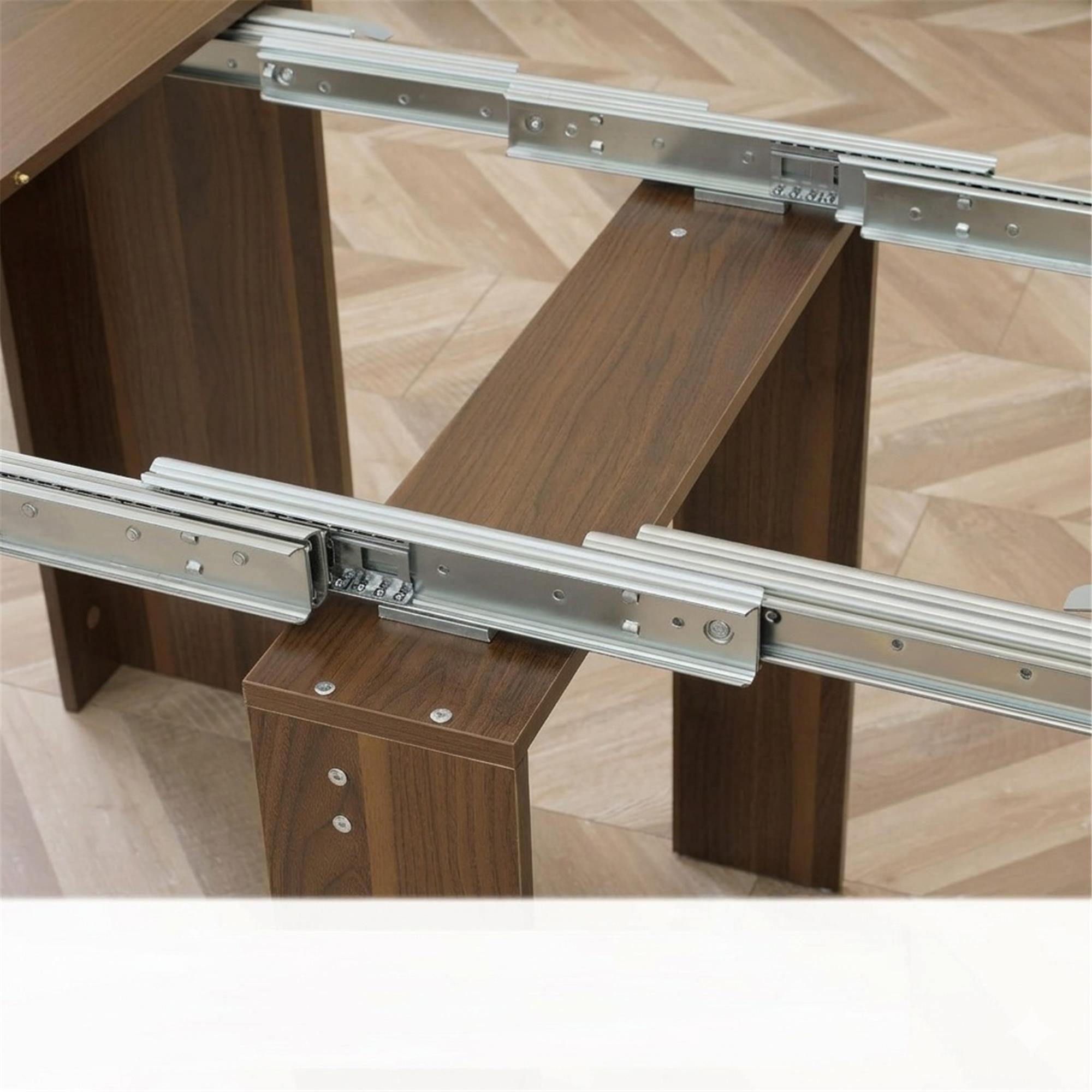 Dal punto di vista strutturale, il tavolo è progettato per garantire stabilità anche quando completamente aperto. La struttura in melamina di legno ha gambe robuste e ben distribuite che assicurano un supporto solido, evitando oscillazioni durante l’utilizzo.