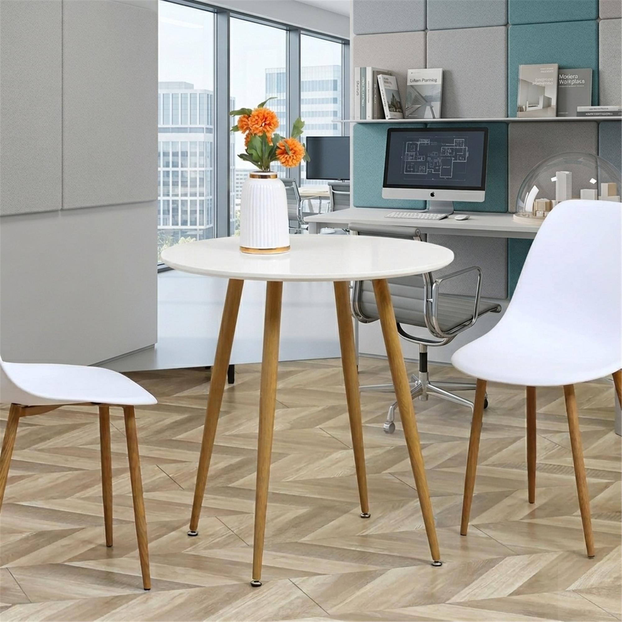 Le gambe hanno il colore del legno naturale e aggiungono un tocco caldo e accogliente a tutto il tavolo. Questo contrasto tra materiali e colori rende il tavolo versatile e facilmente integrabile in diversi stili d’arredo, dal moderno minimalista allo scandinavo.