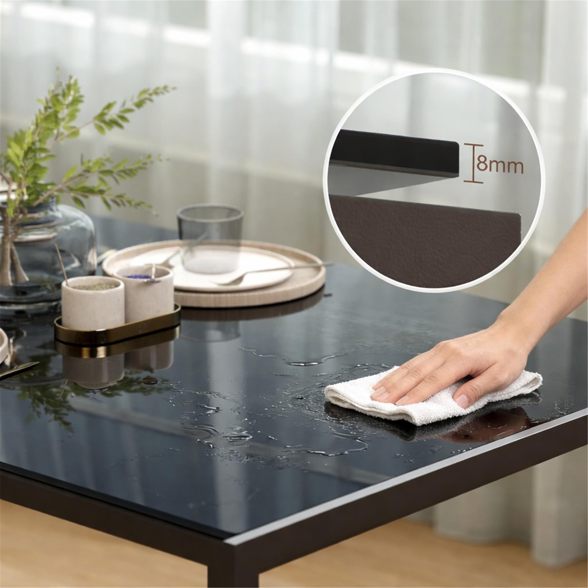 Il ripiano in vetro, oltre ad essere esteticamente raffinato, è resistente e sicuro grazie al processo di tempera. Questo garantisce una maggiore robustezza rispetto al vetro tradizionale, rendendolo adatto all’uso quotidiano in contesti lavorativi intensivi, dove è importante coniugare stile e funzionalità.
