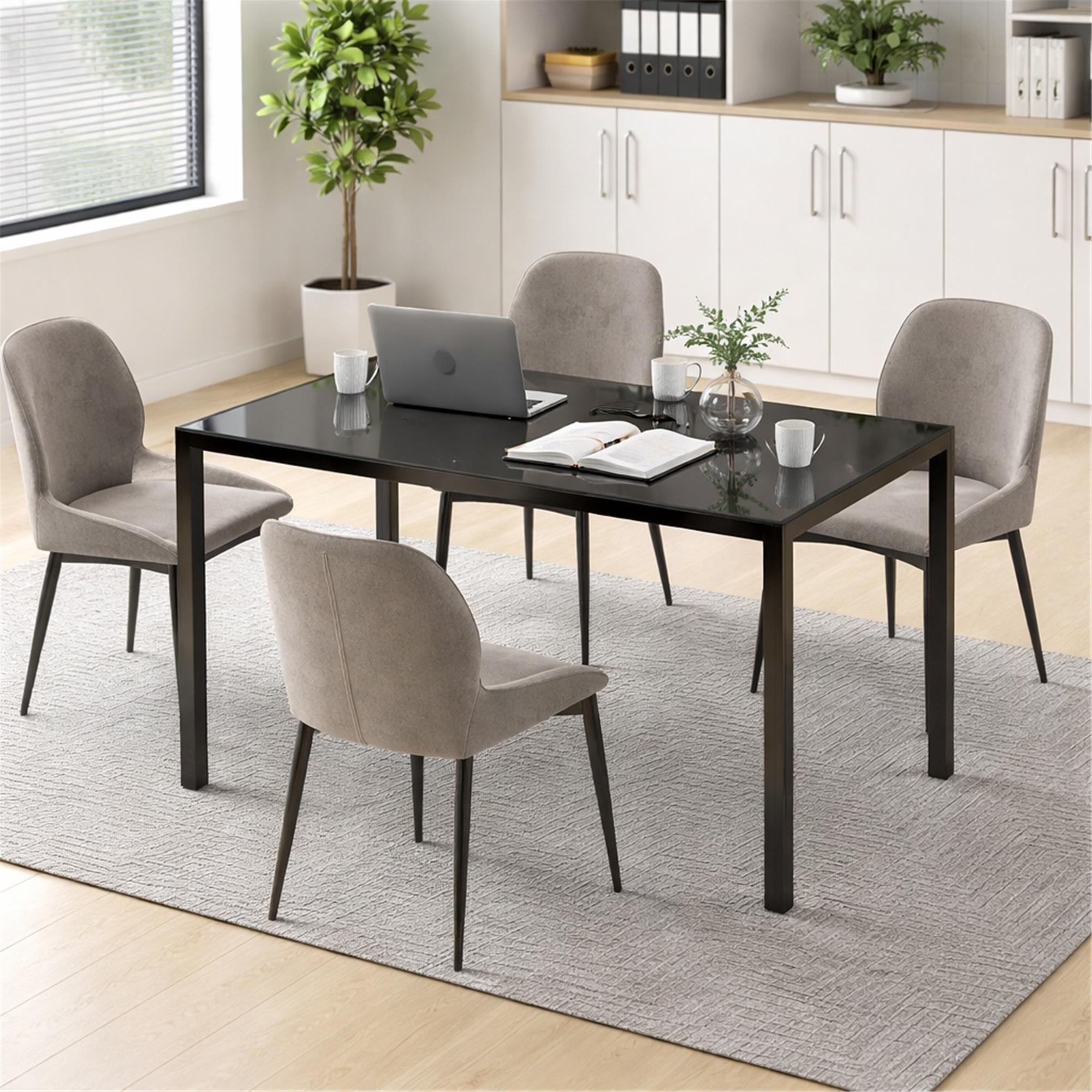 Le gambe sono realizzate in robusto metallo che assicura stabilità e solidità alla struttura. Il loro design lineare e minimalista si integra perfettamente con il piano in vetro. Sono inoltre dotate di protezioni in plastica per il pavimento per evitare antiestetici graffi.