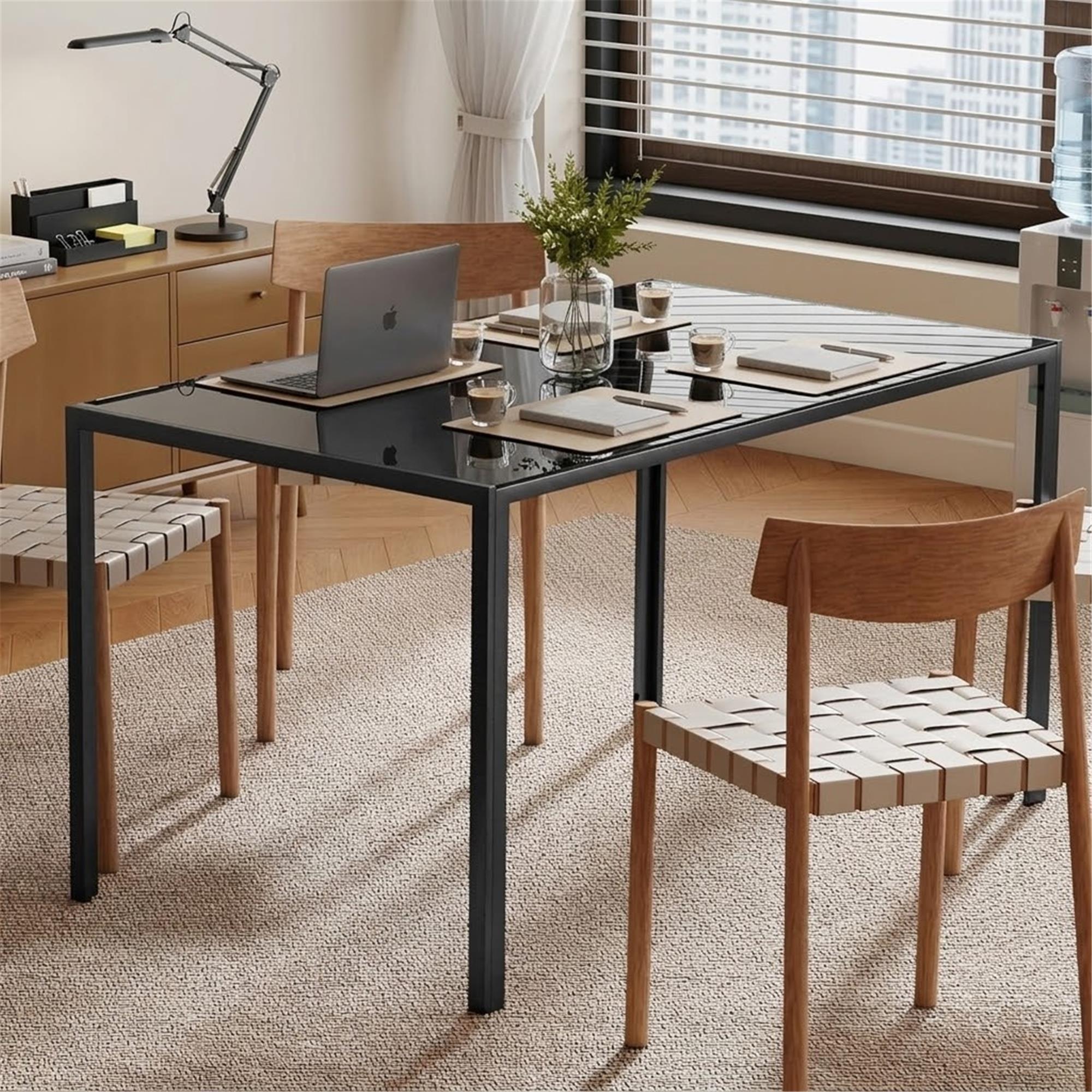 La facilità di pulizia del vetro e la durabilità dei materiali rendono questo tavolo una scelta pratica oltre che estetica. È una soluzione ideale per chi desidera arredare una sala riunioni con un elemento distintivo, capace di valorizzare lo spazio e migliorare l’esperienza lavorativa quotidiana.