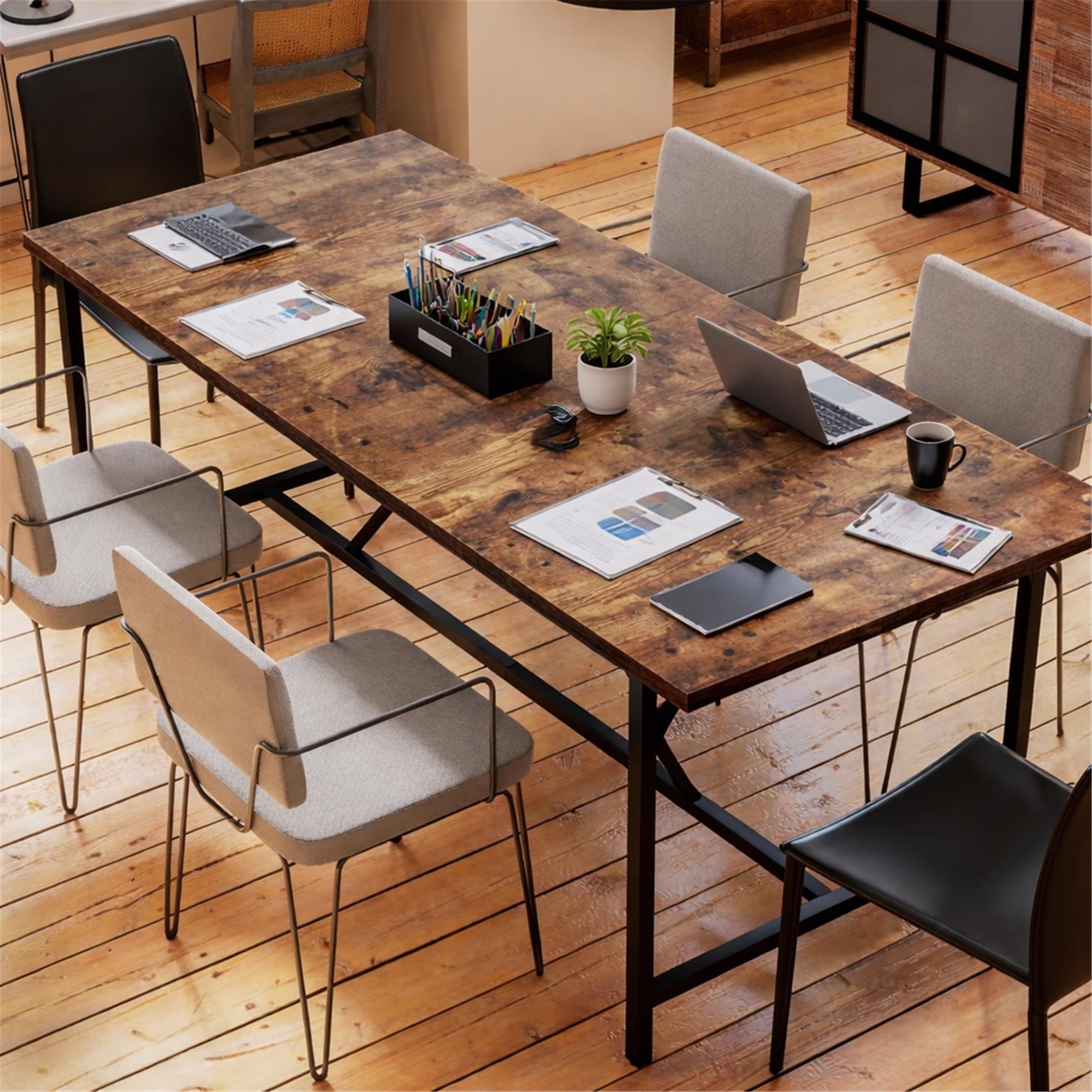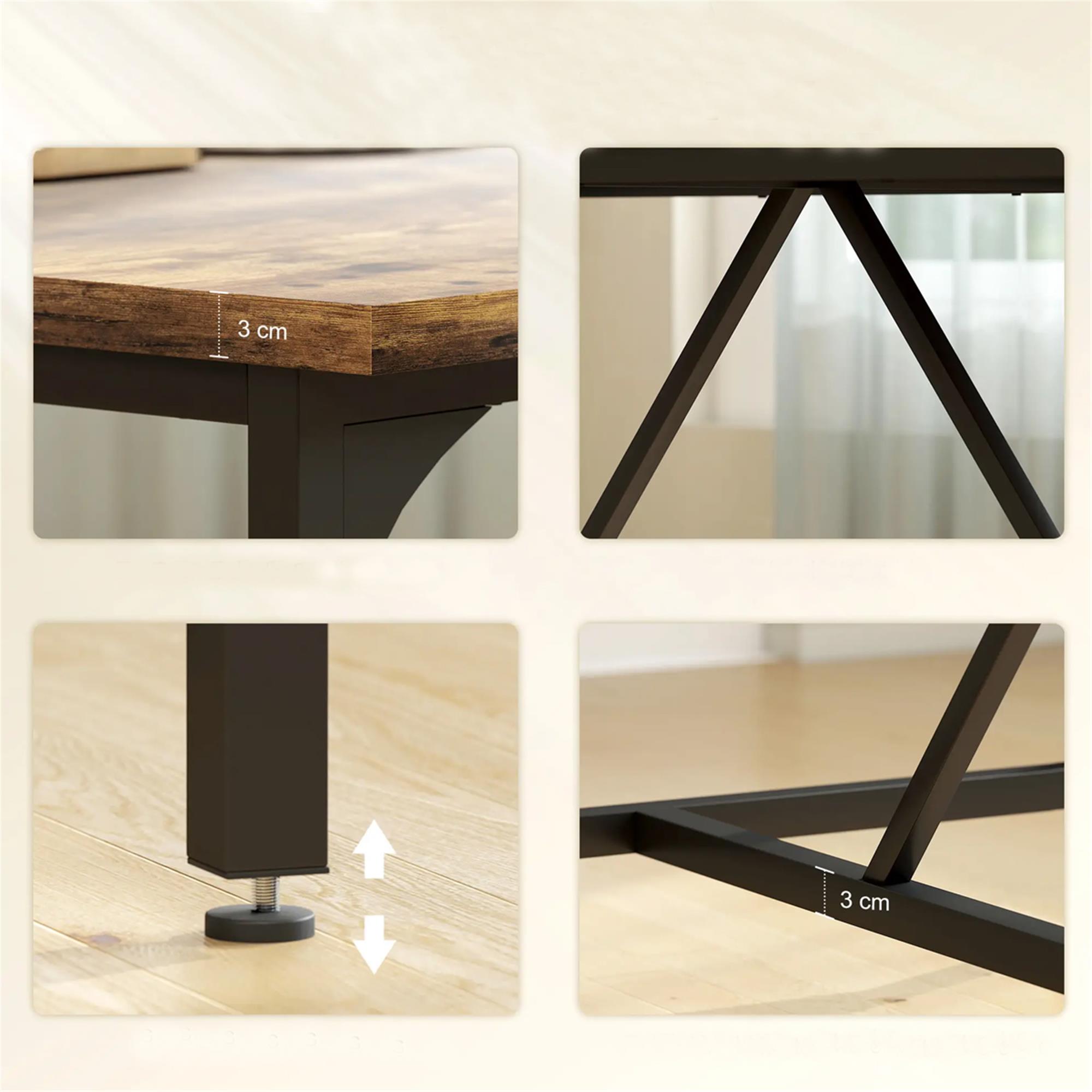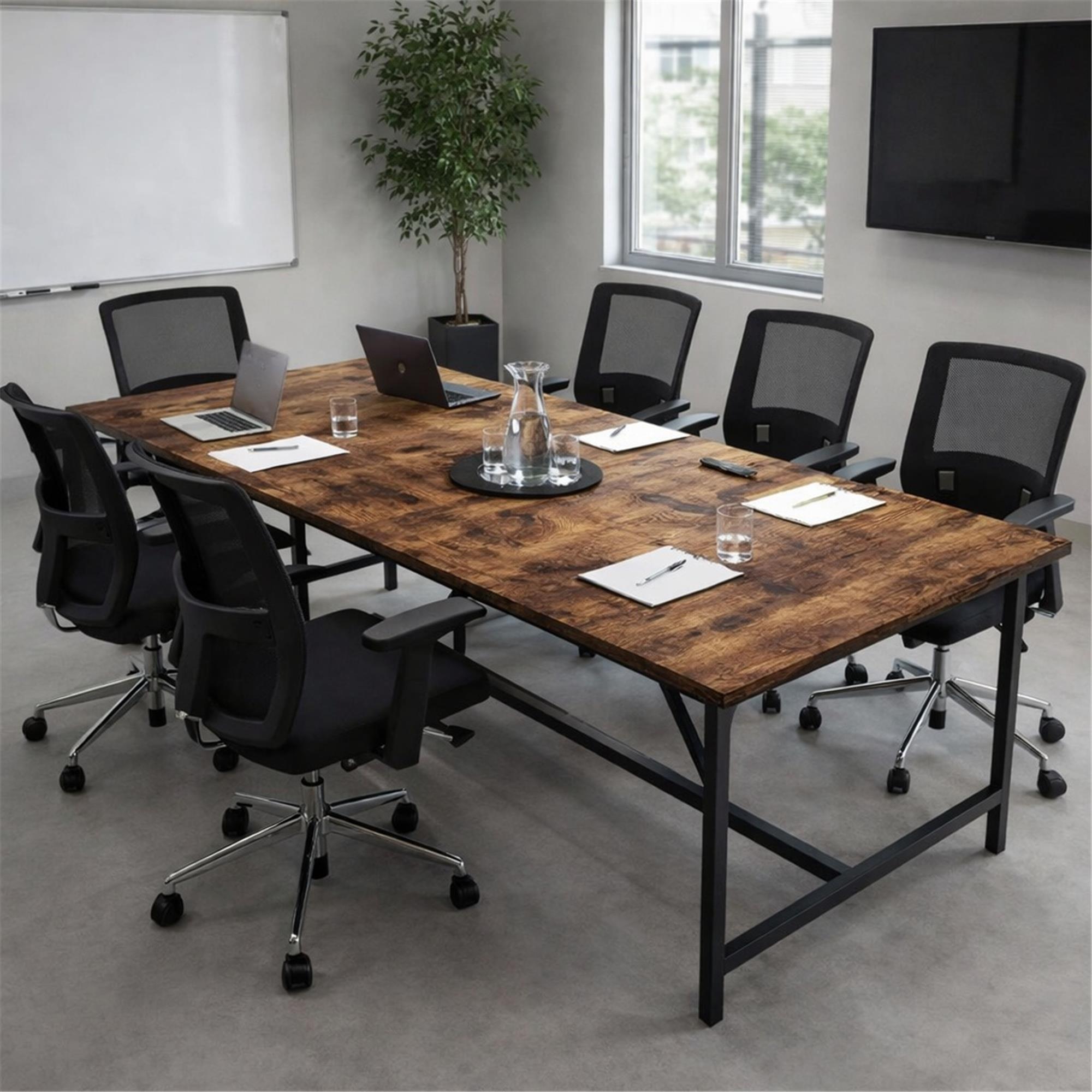 Il ripiano, realizzato in legno con finitura effetto vissuto e venature naturali dallo spessore di 3cm, dona calore all’ambiente creando un perfetto stile industriale. Grazie alle sue dimensioni generose, offre ampio spazio per laptop, documenti e accessori da lavoro, favorendo collaborazione e produttività durante riunioni e brainstorming.