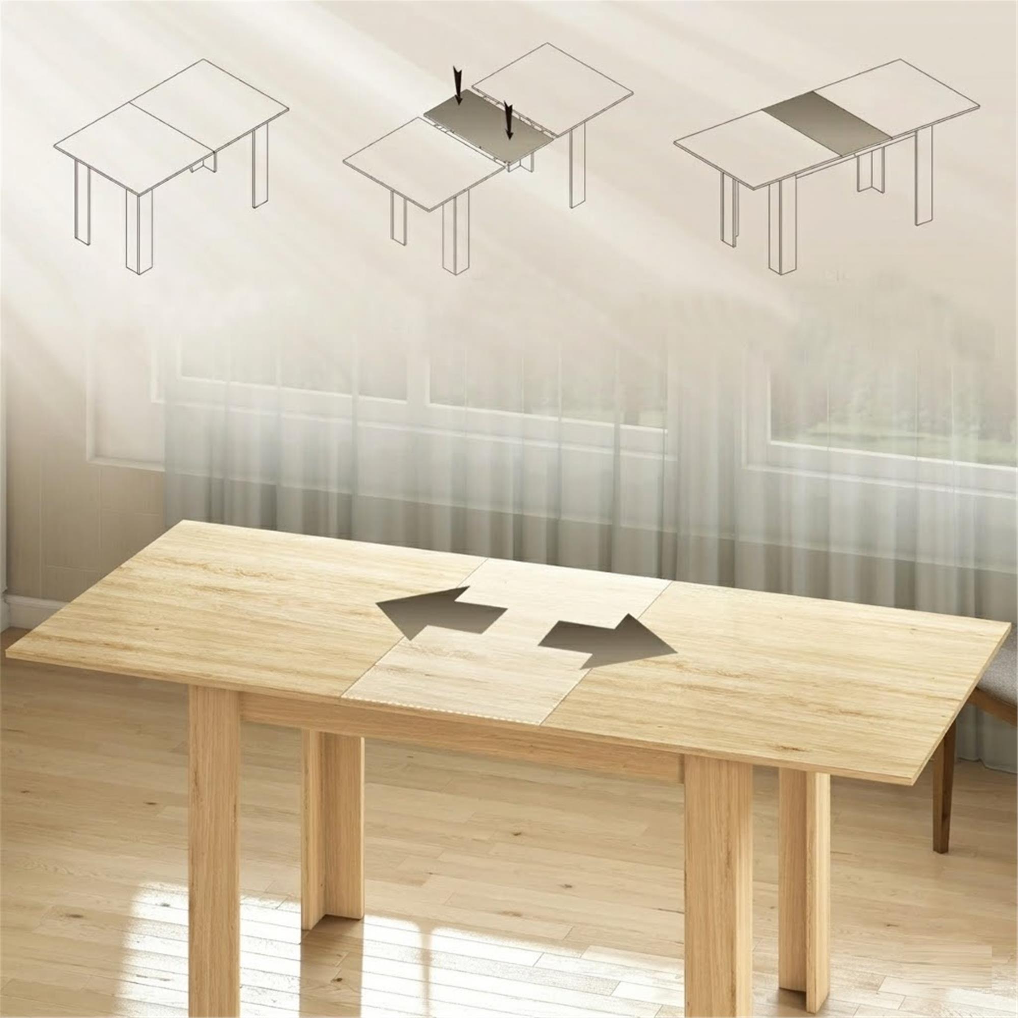 La principale caratteristica di questo tavolo è la sua flessibilità dimensionale. Si può infatti aprirlo o chiuderlo facilmente grazie alle sue guide in acciaio, consentendo di ampliare la superficie senza sforzo.
